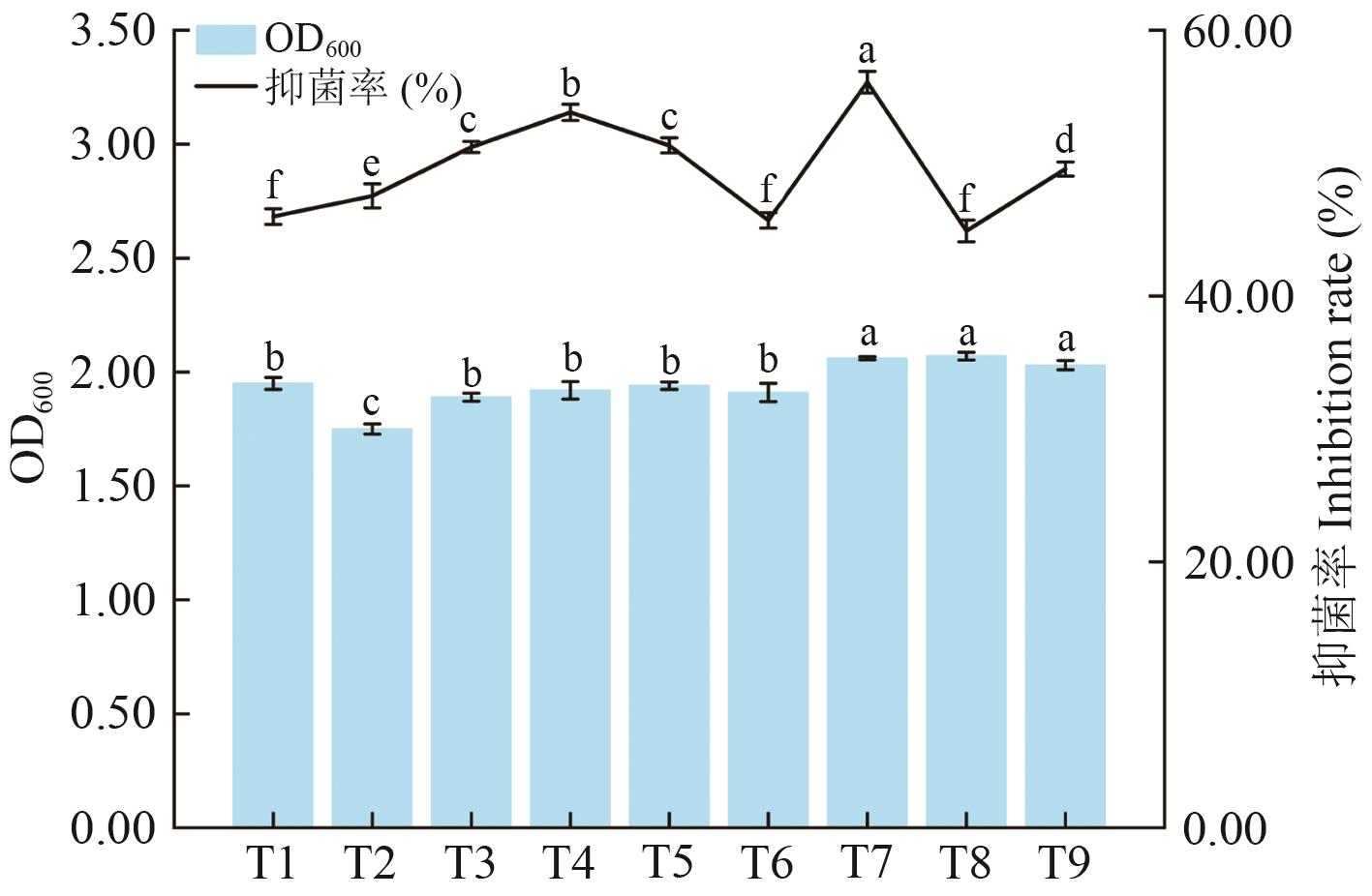 试验 Test | 序号 Number | 处理 Treatment | 菌圈直径 Colony diameter (mm) | 抑菌率 Inhibition rate (%) |