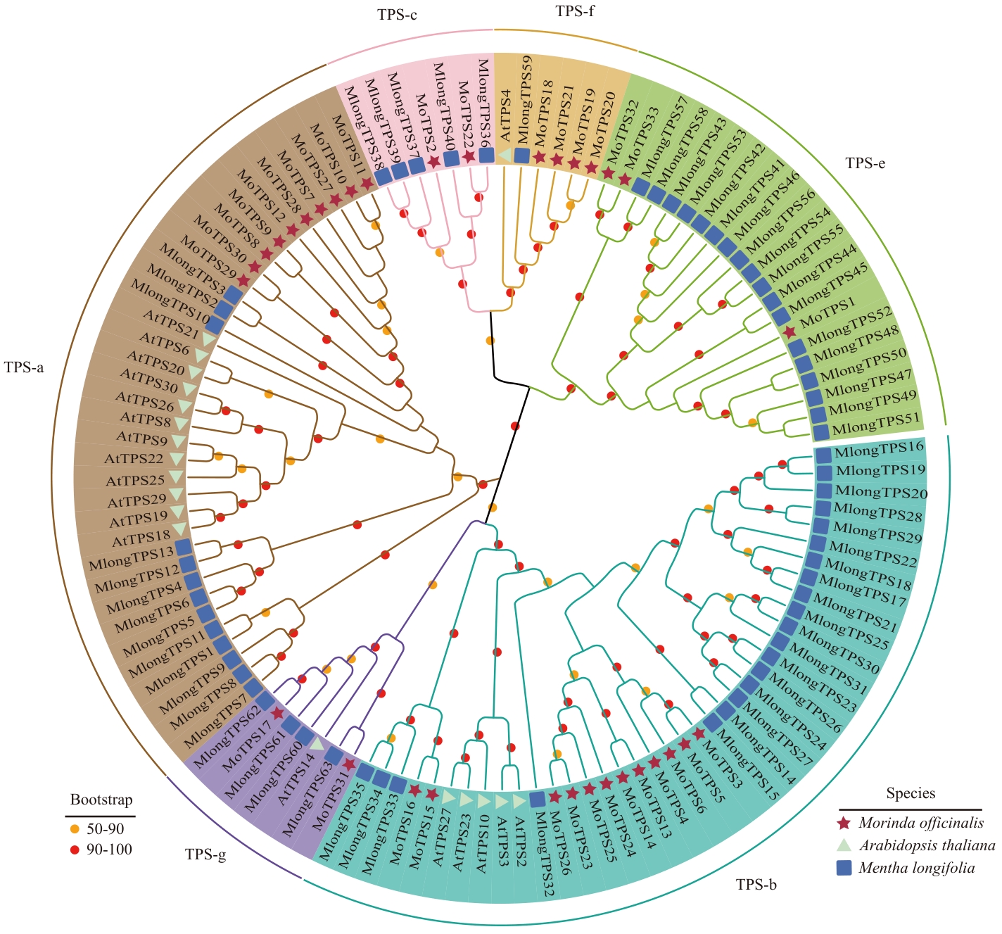 Jiang SY, Jin JJ, Sarojam R, et al. A comprehensive survey on the terpene synthase gene family provides new insight into its evolutionary patterns [J]. Genome Biol Evol, 2019, 11(8): 2078-2098.