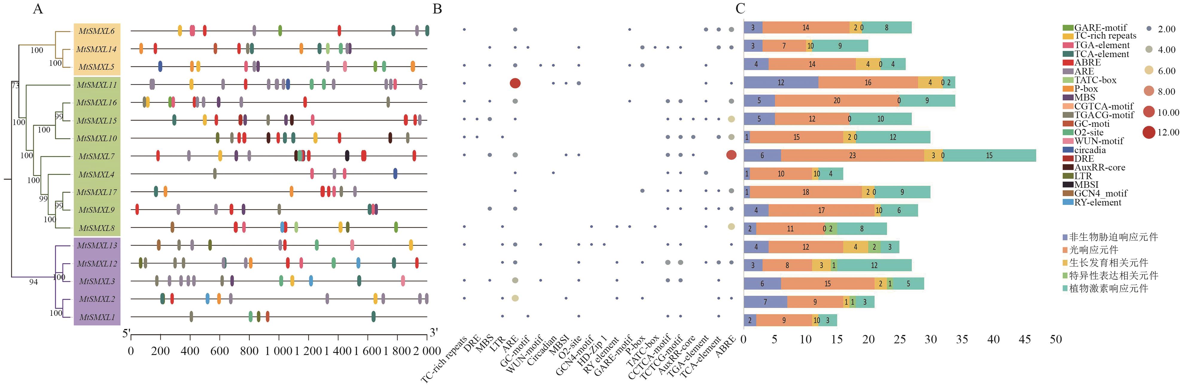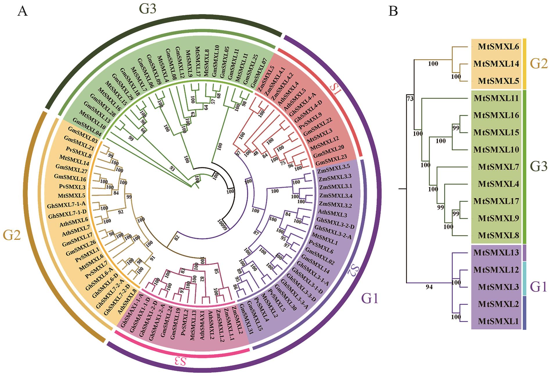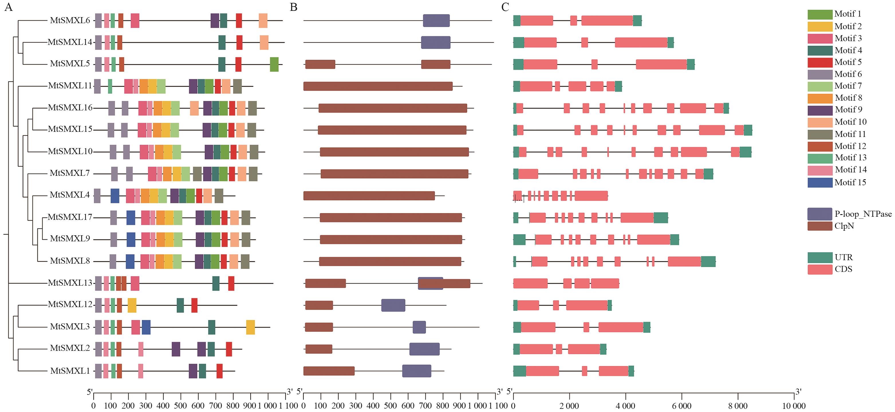 关键词: MtSMXL, 基因组, 蒺藜苜蓿, 全基因组鉴定, 系统发育, 基因特征
