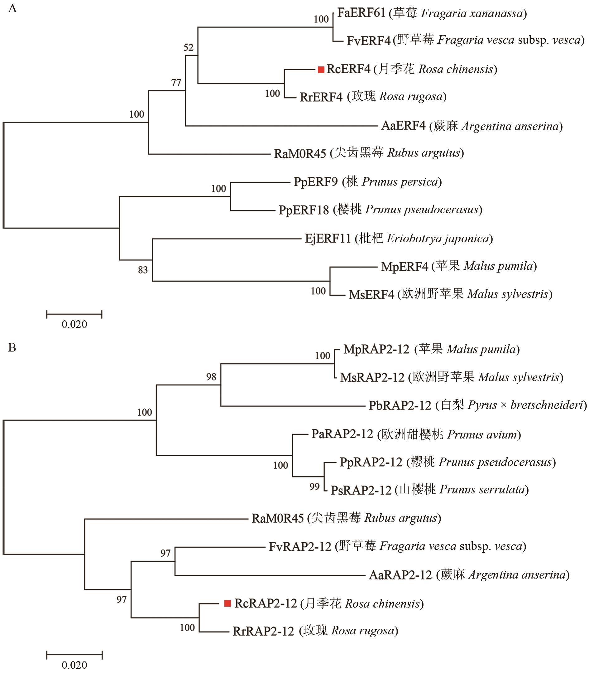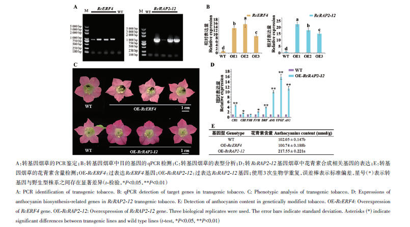 Key words: RcERF4, RcRAP2-12, bioinformatics analysis, expression pattern, subcellular localization, genetic transformation, protein-protein interaction, flower coloration