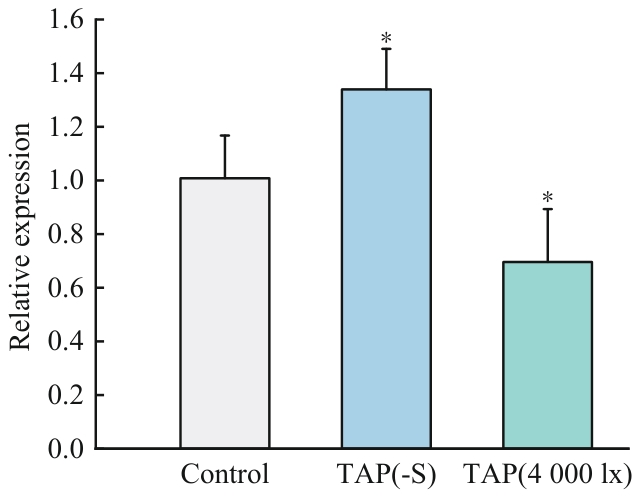 目的 新黄素是一种广泛存在于绿色植物中的脂溶性类胡萝卜素,不仅是光合作用中不可或缺的关键色素,还具有抗氧化等多种重要的生理功能。深入分析影响新黄素合成的培养条件及相关蛋白质,对其产量提升具有重要意义。 方法 以模式微藻莱茵衣藻为对象,考察不同培养条件(缺氮、缺硫、光照强度)对新黄素合成的影响;基于生物信息学分析、RNA干扰技术、转录水平和HPLC检测相结合的方法,挖掘影响莱茵衣藻中新黄素合成的相关蛋白质。 结果 光照强度从3 000 lx提高到4 000 lx时,莱茵衣藻的新黄素含量提高16.1%,而缺氮和缺硫条件下的新黄素含量分别比正常条件下降37.2%和42.6%。3个含有DUF4281功能域的假定蛋白质中,nxs2和nxs3转录水平的下降使得新黄素含量分别提高17.4%和33.7%,而nxs1的干扰无明显影响。进一步分析发现,4 000 lx光照和缺硫条件下,nxs3的转录水平分别降低30.4%和提高34.0%,该变化分别与新黄素含量在4 000 lx条件下的上升和缺硫条件下的下降趋势对应。 结论 4 000 lx光照条件比3 000 lx更有利于新黄素合成,缺氮和缺硫条件则产生抑制作用。nxs2和nxs3负向调控莱茵衣藻的新黄素合成,而nxs1无显著影响。