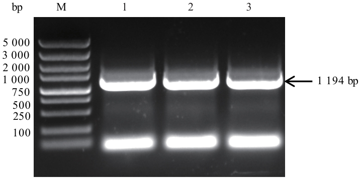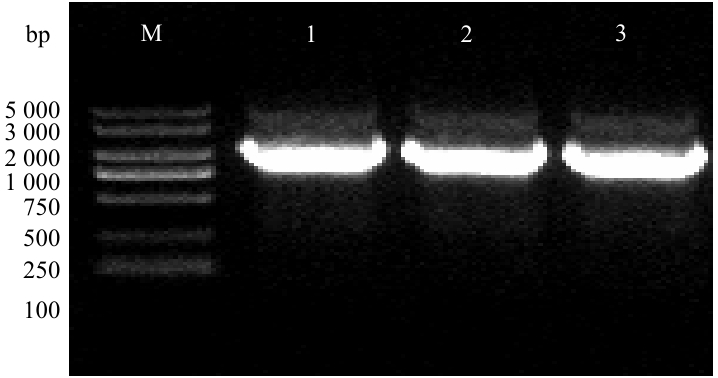 图1 木薯MeMYB106基因PCR扩增结果M:DL5 000 marker,1-3:MeMYB106基因扩增产物