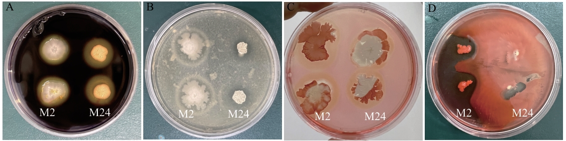 表1 M2及M24菌株生理生化功能鉴定