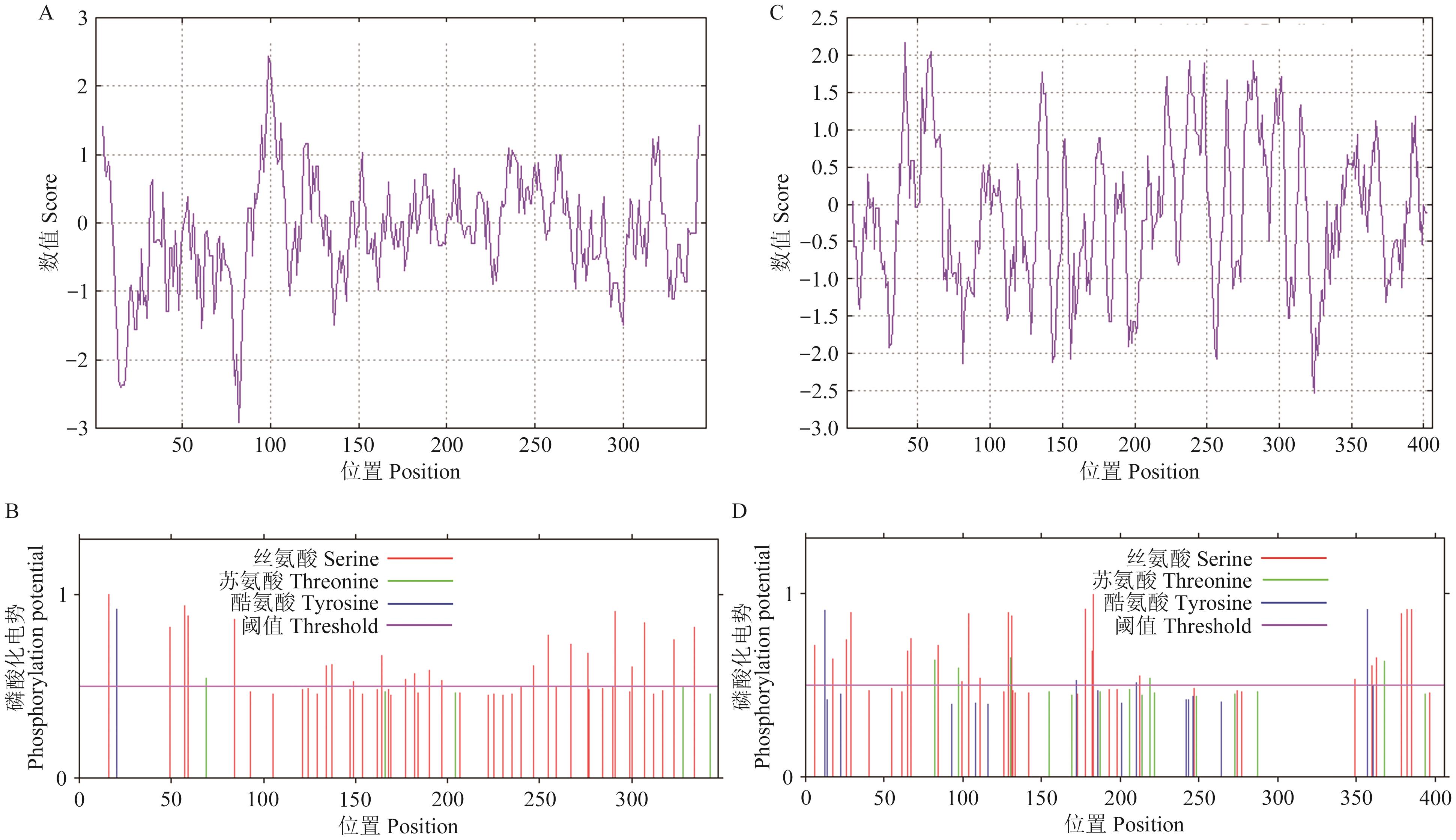 Objective Panicle type is an important factor affecting crop yield and mechanized harvesting. DEP1 (Dense Erect Panicles 1) and EP3 (Erect Panicles 3) genes are key ones controlling spike type formation. This study aims to explore the structure and expression characteristics of PmDEP1 and PmEP3 ones in proso millet (Panicum miliaceum L.). Method PmDEP1 and PmEP3 genes were cloned and subjected to bioinformatics analysis using the scattered ear type millet varieties, broomstick millet (ZM), dense ear type millet M278, and lateral ear type millet M350 as materials. RT-qPCR was used to detect the expression patterns of PmDEP1 and PmEP3 genes in different ear types of proso millet. Result Sequence result analysis shows that, the full-length cDNA of PmDEP1 is 1 044 bp, encoding 347 amino acids. The protein domain is predicted to be PAT1. The secondary structure is dominated by random coils. The tertiary structure is highly similar with that of rice DEP1 protein. It is predicted to be located in the nucleus and has high homology with switchgrass. It has 28 phosphorylation sites and does not have transmembrane structure and signal peptide. The full-length cDNA of PmEP3 is 1 215 bp, encoding 358 amino acids. The encoded protein belongs to the F-box family. The secondary structure is dominated by random coils and extended chains. The tertiary structure is highly similar with that of rice Os02g0260200 protein. It is predicted to be located in the cytoplasm. It has high homology with switchgrass, does not contain signal peptides, has 32 phosphorylation sites, and has a small amount of transmembrane structure. The RT-PCR results shows that PmDEP1 and PmEP3 genes are expressed in different parts of the plant at different stages. PmDEP1 gene is mainly expressed in the roots at the jointing stage, with the highest expression in the leaves of broomstick millet and M278 at the heading stage, and in the stems of M350. The expressions of PmEP3 gene is the highest in the leaves at the jointing stage, in the leaves of broomstick millet and M278 at the heading stage, and in the ears of M350. Conclusion PmDEP1 and PmEP3 genes are spike type genes that may be involved in regulating the formation of proso millet spike types.