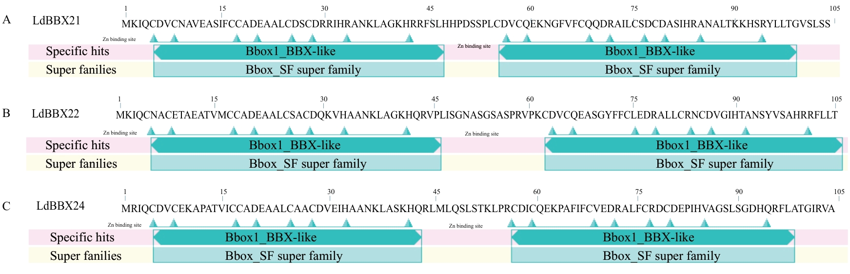 Table 2 Basic physicochemical properties of LdBBX21, LdBBX22, and LdBBX24 proteins