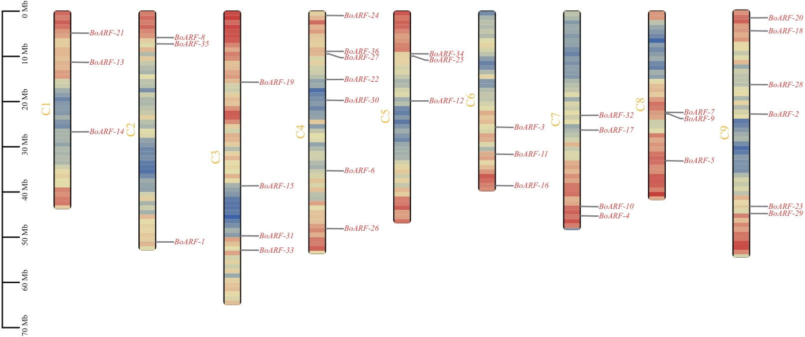 | BoARF35 | Bo2g024860.1 | 606 | 68.317 08 | 9.51 | Nucleus |