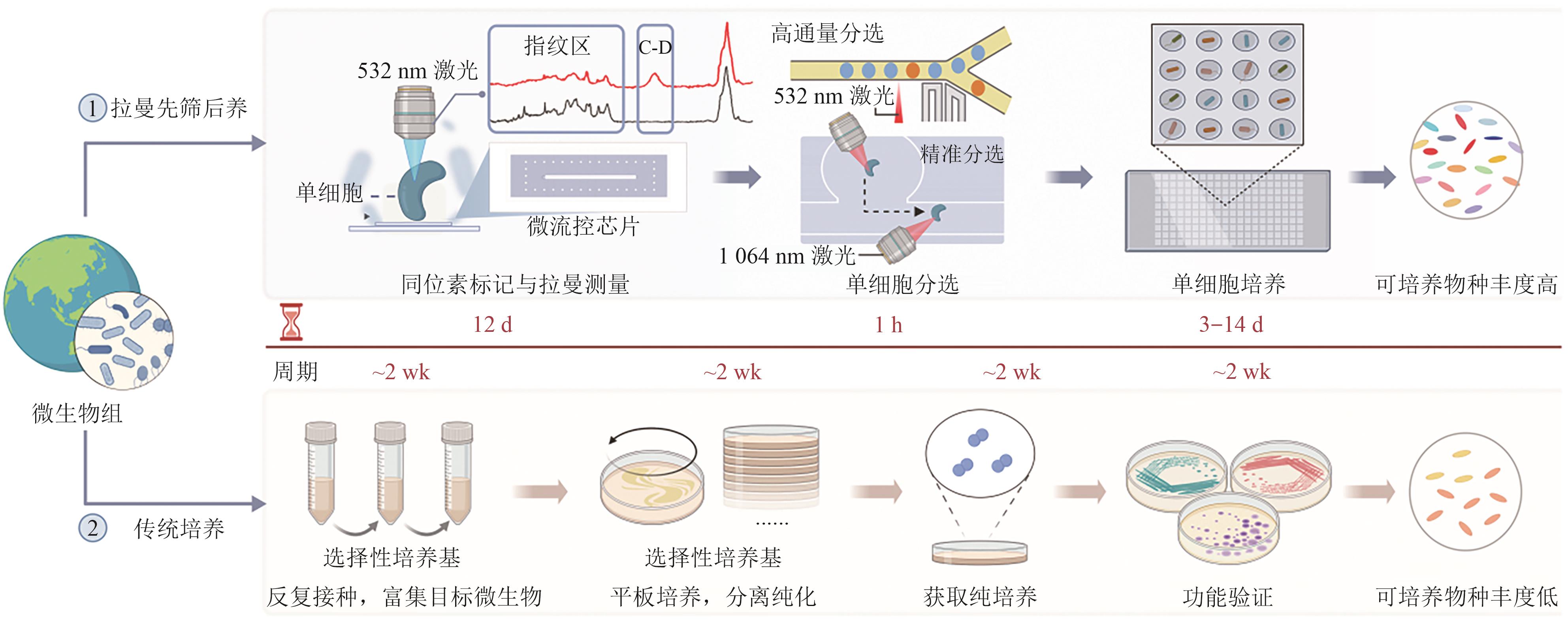 | 功能识别机制 | 代谢功能(D2O吸收速率) | 荧光标记抗原/报告基因 | 细胞表面抗原 | 代谢产物或酶活性(荧光/化学底物) | 核酸序列(16S rRNA序列) |